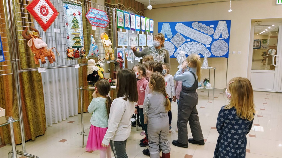 Воспитанники детского вокального коллектива "Бамбини" вместе с руководителем Оксаной Загородневой посетили выставку "Чудо Рождества", которая проходит в выставочном зале Центра культурного развития "Форум". Большой восторг у малышей вызвали рукотворные экспонаты, представленные на выставке мастерами декоративно-прикладного творчества Губкинского городского округа. Дети с интересом разглядывали затейливый наряд Снегурочки, веселую лоскутную корову и вязаных зверей.