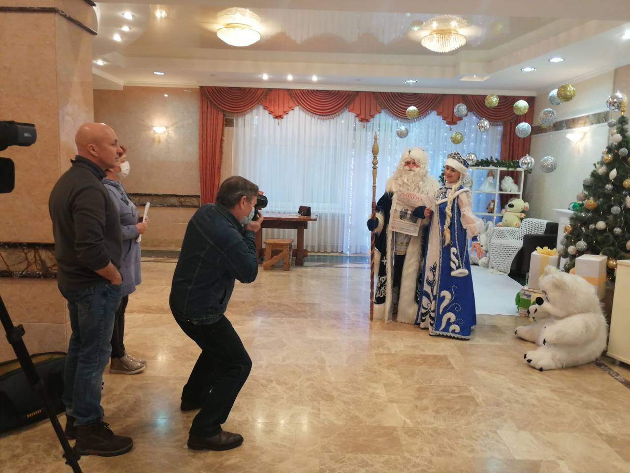 Сегодня состоялась съемка новогоднего поздравления для работников Лебединского ГОКа, а завтра Дедушка запишет поздравления для детей и взрослых.