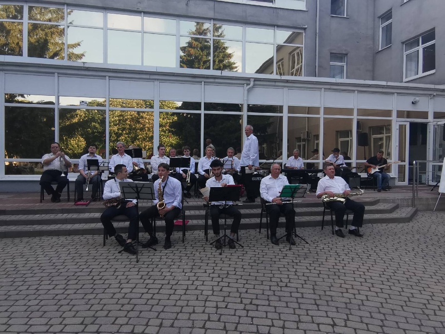 Под звуки музыки муниципального духового оркестра под руководством Андрея Соколова, собравшиеся в этот тёплый майский вечер гости не смогли усидеть на месте - концертная площадка превратилась в танцевальную.