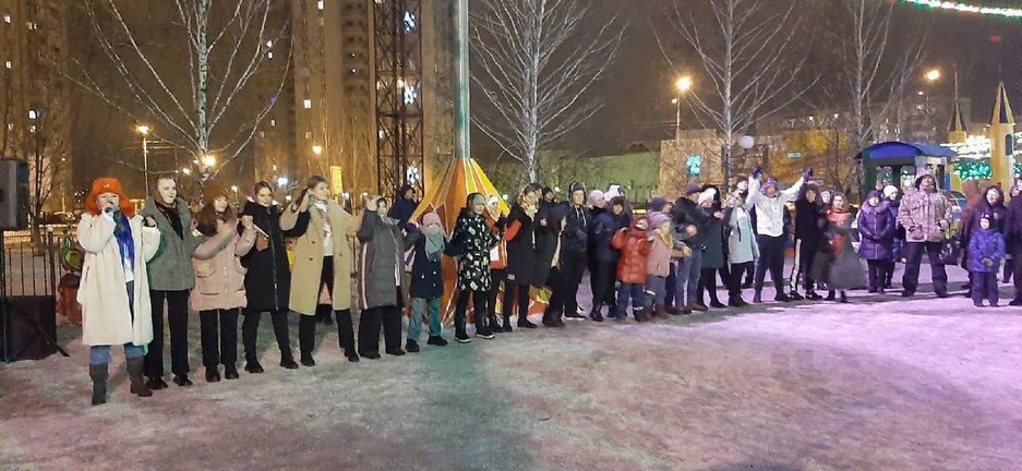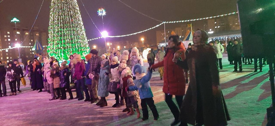 Весёлые игры, народные забавы и танцы до упаду, в каждую активность зрители включались с задором. Все, от мала до велика ни минуты не стояли без дела - аплодировали певцам, смеялись от души, танцевали так, что казалось, ёлка тоже пустилась в пляс!