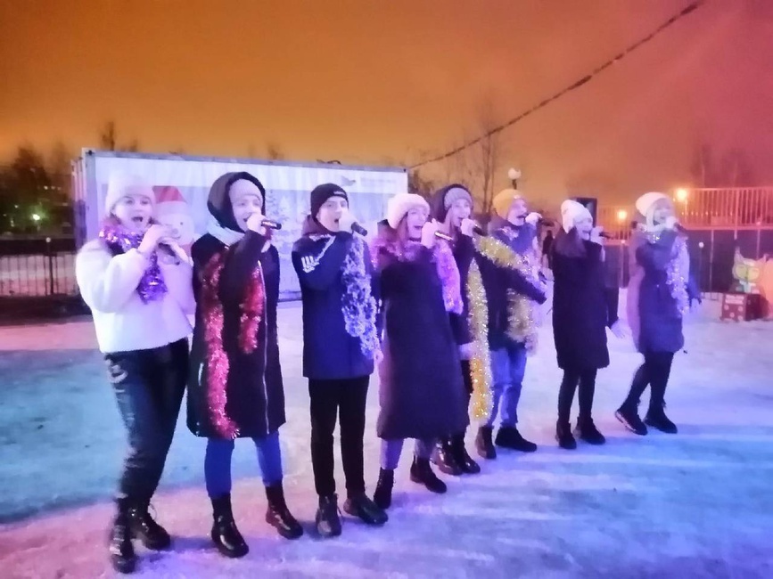 В этот вечер свое творчество зрителям дарили ансамбли "Славянская душа" и "Неклюква", студии эстрадного пения "Злата" и "Акцент", хореографический коллектив "Стиль", солисты И. Полякова, И. Меренкова, Н. Азарова, Л. Новикова. В роли Деда Мороза и Снегурочки - Дед Мороз и Снегурочка.