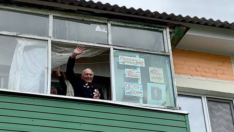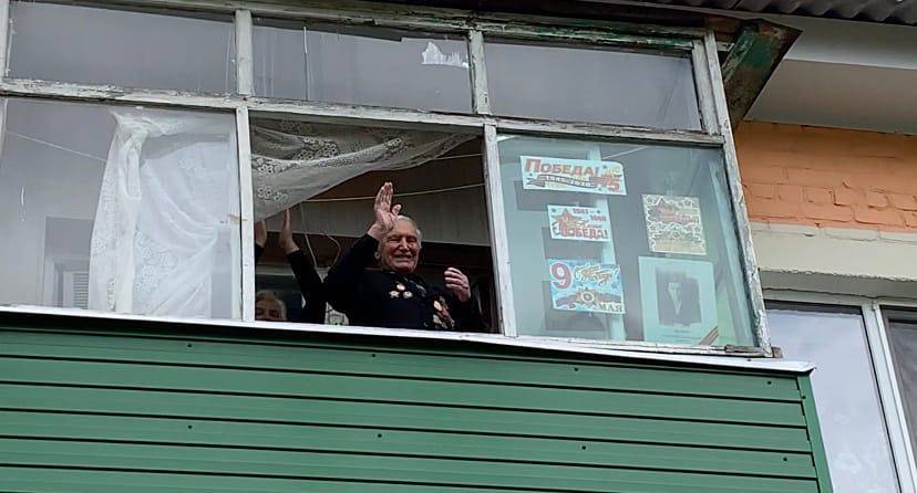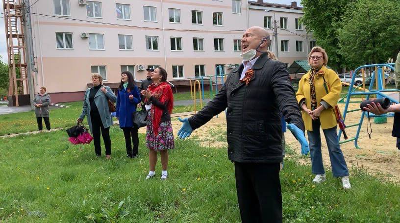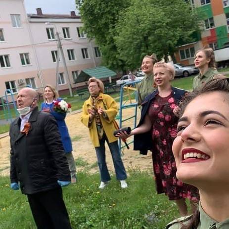 "Фронтовая творческая бригада" поздравила с Днём Победы ветерана войны - Владимира Семёновича Вологу. В честь героя звучали любимые фронтовые песни в исполнении "Серебряных голосов Белогорья" - Сергея Шквырина и Владислава Бадоева. Хореографы ЦКР "Форум" пустились в пляс под "Смуглянку", а дружные аплодисменты и цветы растрогали до слез всех присутствующих.