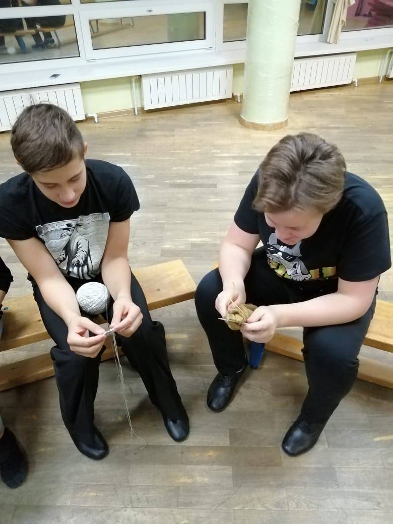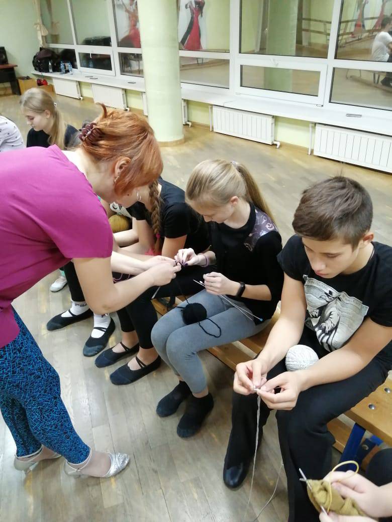 От старшего поколения танцоров младшему передаются не только азы хореографии, но и простые жизненные навыки. Выпускница ансамбля бального танца "Дебют" Марина Мацепура провела мастер-класс по вязанию для юных танцоров. Даже мальчики с интересом осваивали таинство превращения обычной нити в полотно.