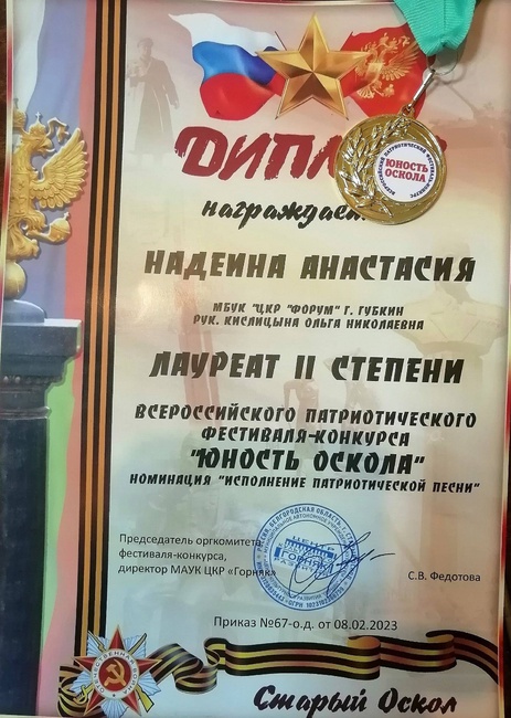 Всероссийский патриотический фестиваль - конкурс "Юность Оскола" в котором приняли участие воспитанники