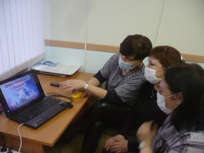 Участники познакомились с правилами ответственного и безопасного поведения в Интернете, о способах защиты от противоправных посягательств в сети. На рабочем компьютере была установлена слайд-презентация «Безопасность в интернете» для просмотра участниками. В слайдах были даны полезные советы, как избежать сетевых угроз и использования личной информации в негативных целях, об угрозе вирусов и спама. Напомнили элементарные нормы сетевой этики. А в завершении прошла викторина «Безопасный интернет».