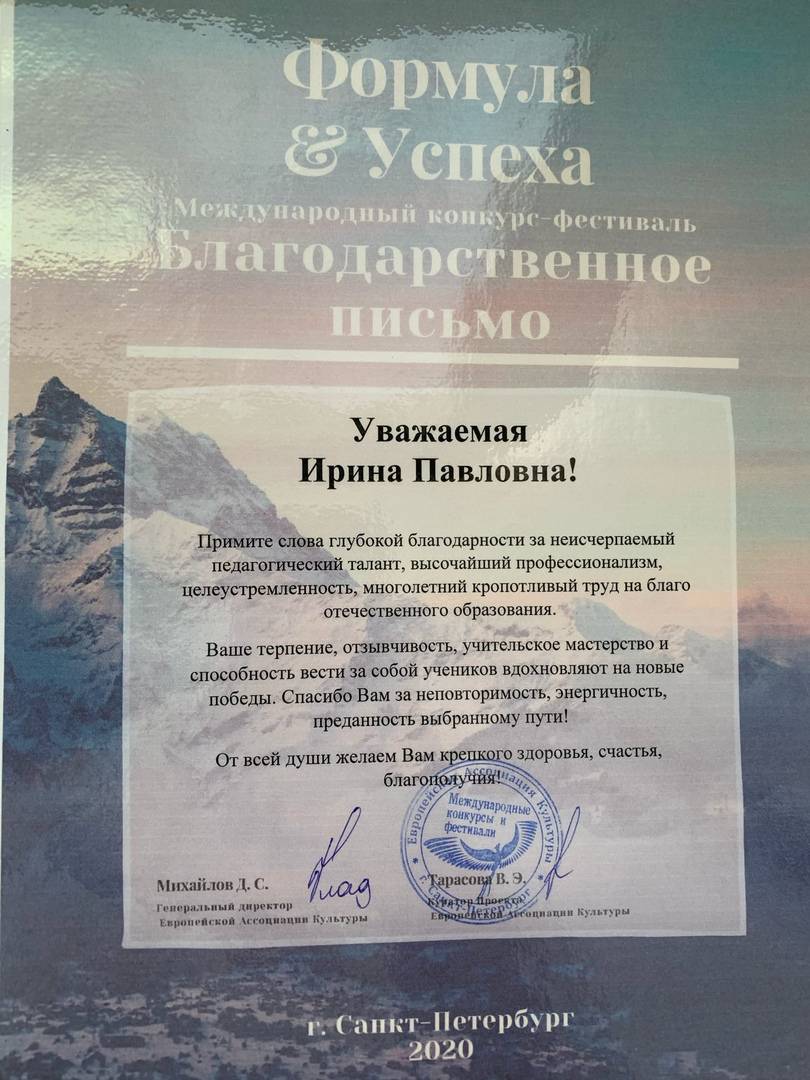 Организаторы конкурса выразили Благодарность руководителю талантливого артиста.