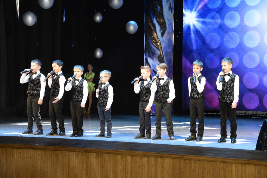 На большую сцену вышли участники сразу трех творческих коллективов! Мальчишки из студии эстрадного пения "Акцентик" как всегда покорили сердца женской половины зала. Веселые малыши "Бамбини" привнесли в концерт задорные песни про таксу, хомяков и единорожку. Яркостью костюмов, нежностью бальных танцев и зажигательными латиноамериканскими ритмами порадовали зрителей участники ансамбля бального танца Данс-класс.