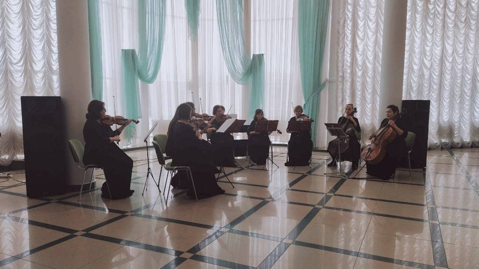 Муниципальный камерный ансамбль "Концертино" исполнил такие известные мелодии, как романс "Метель", вальс "На прекрасном, голубом Дунае", "Лунная серенада" и другие.