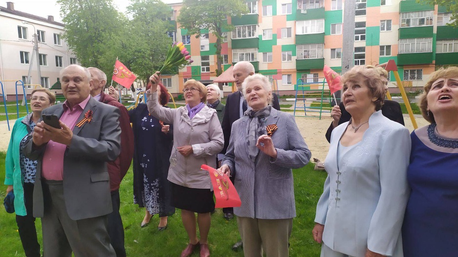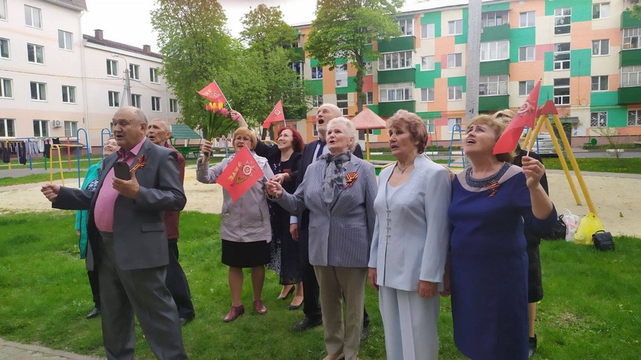 Концерт под окнами ветерана Великой Отечественной войны, моряка-подводника, Владимира Семеновича Вологи устроили участники хора ветеранов "Живая память".
