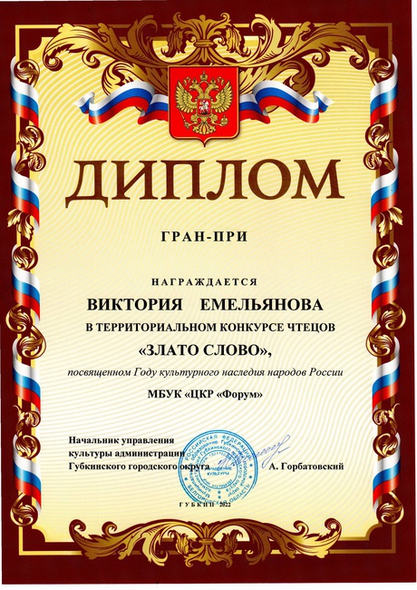 1 апреля в нашем городе прошёл ежегодный территориальный конкурс чтецов «Злато слово». В нём приняли активное участие воспитанники театральной студии «Ровесник». Мы гордимся и поздравляем с заслуженными наградами Викторию Емельянову, получившую Гран – При конкурса! Валерию Воевода – занявшую 1 место в возрастной категории «Подросток» и Юлиану Ситникову – занявшую 2 место в этой же возрастной категории!