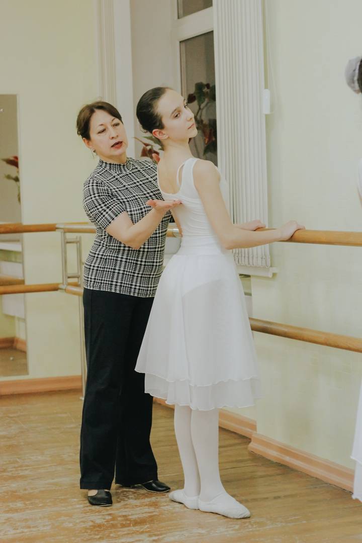 Мастер-класс «Экзерсис у станка» провела руководитель ансамбля классического танца «МимАнс» Екатерина Гребнева в формате – старшие для средних.