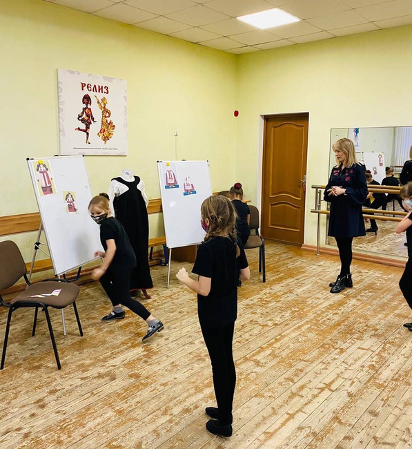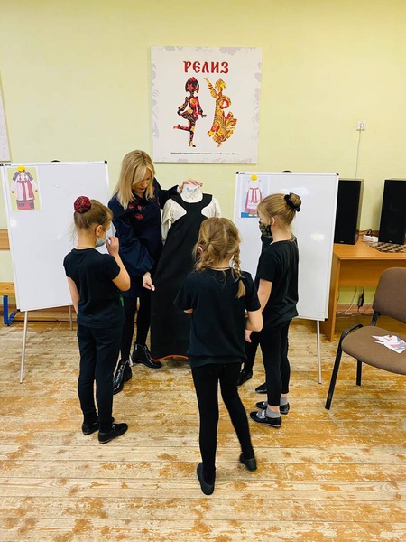 В «Народном самодеятельном коллективе» ансамбле танца «Релиз» прошёл мастер-класс «История народного костюма». Дети узнали о тканях, из которых шили рубахи и платья, рассмотрели детали народного костюма, поиграли в познавательные игры.