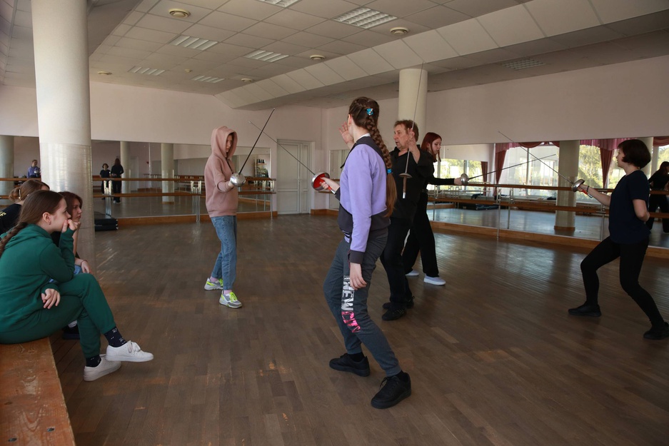 9 апреля прошёл очень интересный мастер-класс с участием ребят из театральной студии «Ровесник», который давал режиссёр театра «Гротеск» Юрий Алексеевич Бежин. Ребята узнали не только о приёмах защиты, нападения, удара. Они пробовали сами выстраивать бой на шпагах под руководством мастера. Интересно было ещё узнать об истории фехтования, о том, чем отличается сценическое фехтование от боевого и спортивного. Это был уже второй урок по сценическому бою, который является одним из элементов Сценического движения. Всё это помогает нашим юным артистам стать гармонично-развитыми, более физически подготовленными и пластически выразительными.