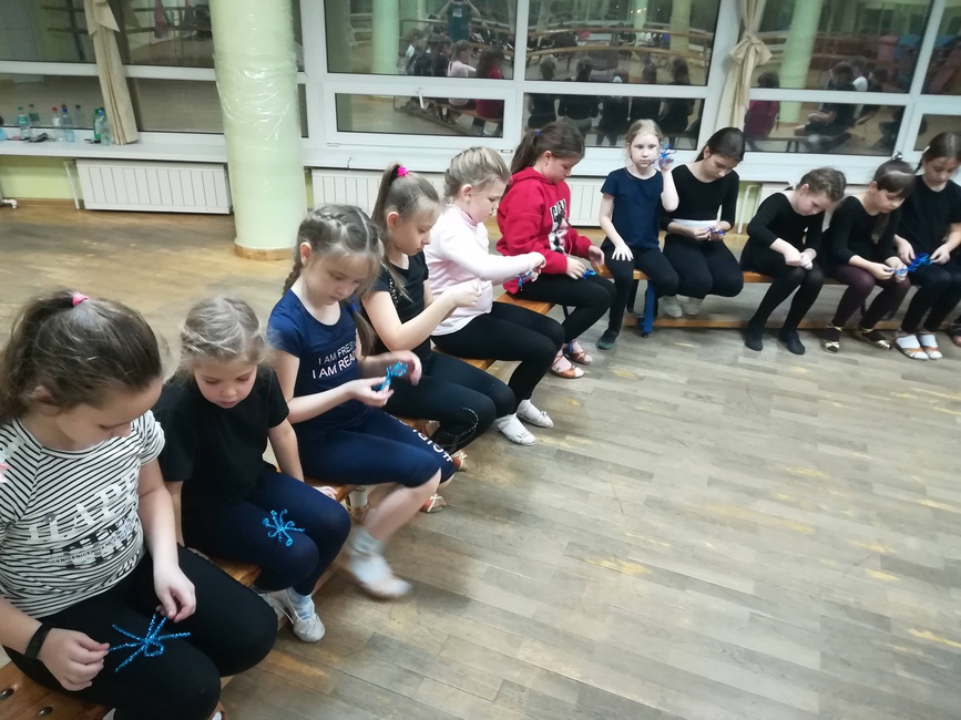 Воспитанники коллектива «Данс-класс» решили необычно украсить зал хореографии. Дети сотворили волшебство своими руками - изготовили из мишуры красавицы-снежинки. Каждая снежинка получилась неповторимой и прекрасной, с частичкой вложенной в нее детской улыбки!