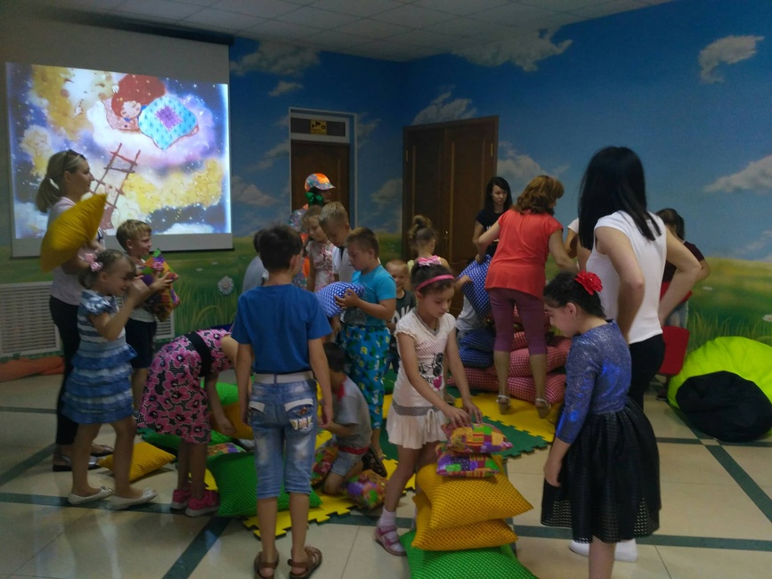 Огромное количество цветных подушек разных форм и размеров – это всегда веселье, а самое главное безопасное времяпровождение. Все вместе разгадывали сны, строили огромные башни из подушек, танцевали с подушками под веселую музыку. Каждый был вовлечён в процесс игры, для каждого ребенка была создана обстановка эмоционального благополучия. Процесс игры и общения был настолько увлекательным, что к участникам присоединились и родители и воспитатели. Детские улыбки, звонкий смех и непосредственные эмоции наполнили своим сиянием Центр культурного развития «Форум».