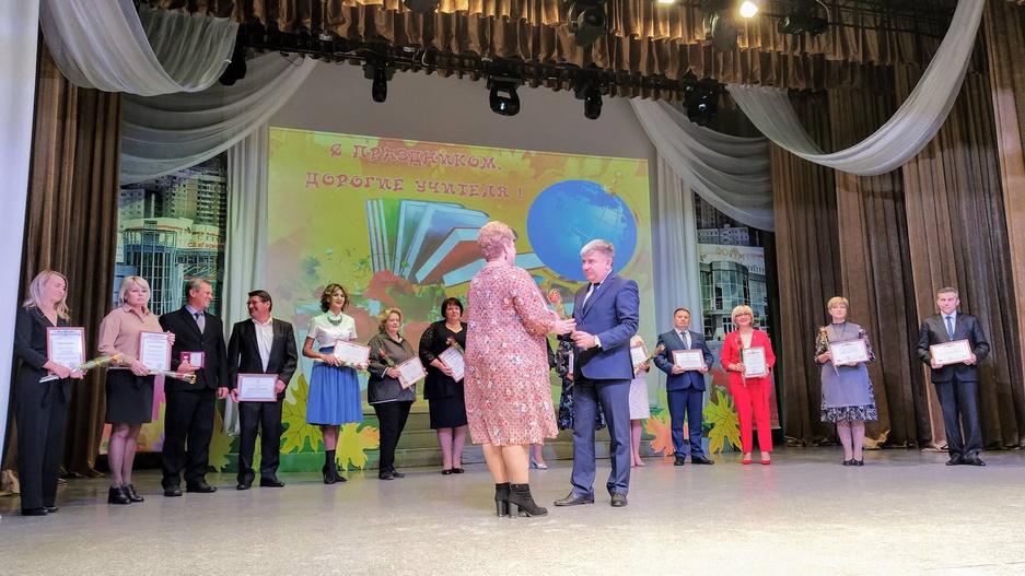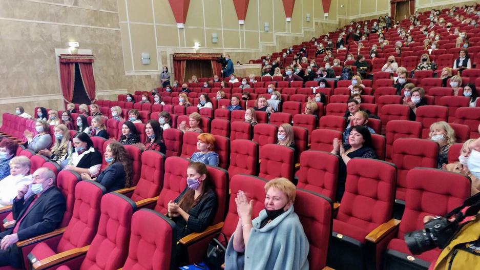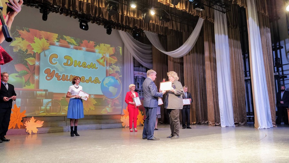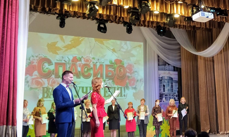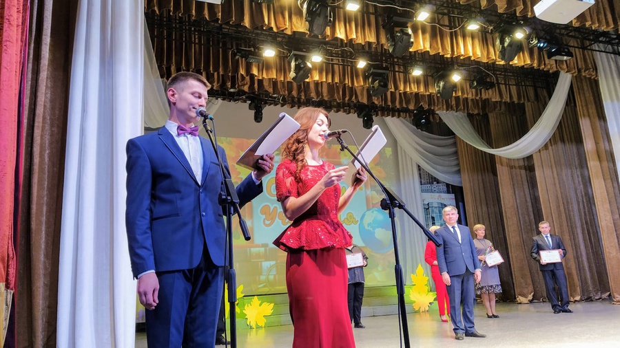 Торжественный вечер, посвящённый Всемирному Дню Учителя прошел в Центре культурного развития "Форум". Организаторы мероприятия - Дом творчества детей и подростков, постарались создать в зале теплую и вто же время торжественную атмосферу. Свое творчество педагогам нашего города подарили солисты и коллективы нашего Центра: "Серебряные голоса Белгородчины" Оксана Загороднева и Сергей Шквырин, группа "Неклюква", солисты муниципального ансамбля "Первая любовь" Людмила Денисова, Дарья Фарафонова и Юрий Некрасов. Женские сердца в зрительном зале растаяли от мужчин муниципального хора "Рождество".