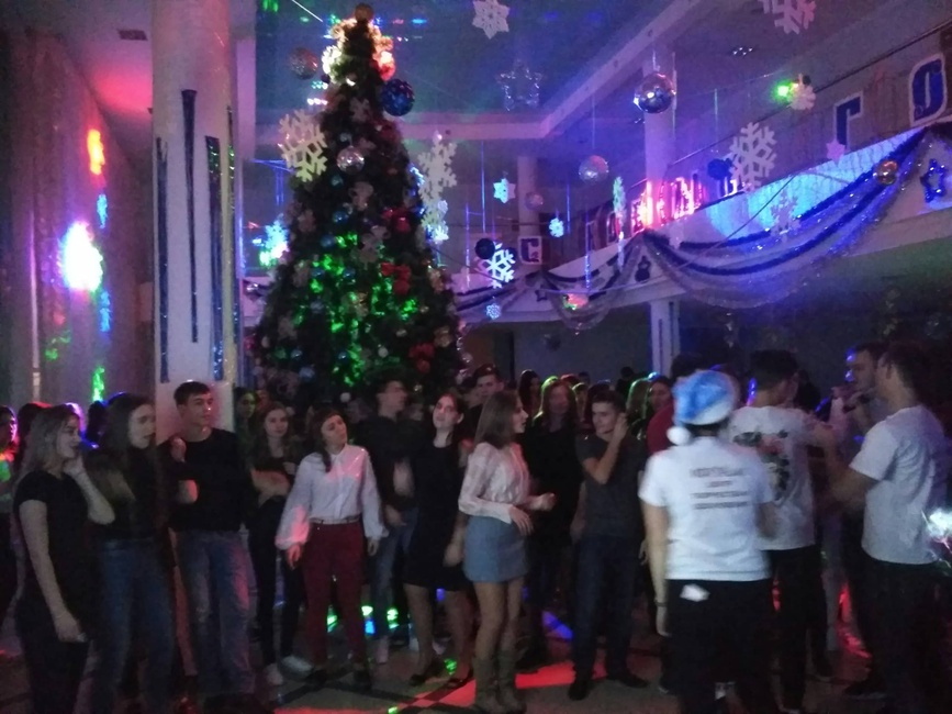 Веселые конкурсы, качающие треки и световое шоу — все это закружило молодые сердца и заполнило их новогодним позитивом. А главный герой праздника Дедушка Мороз прямо в зале выбрал себе помощницу Снегурочку из присутствующих очаровательных девчонок.
