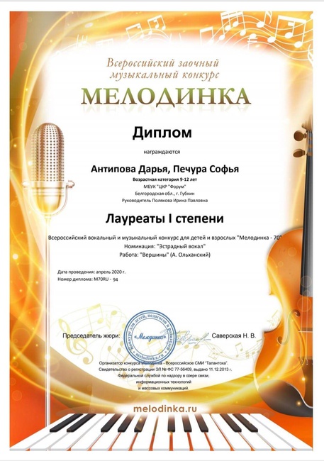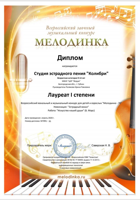 Воспитанники студии эстрадного пения «Колибри» поучаствовали во Всероссийском конкурсе «Мелодинка».
