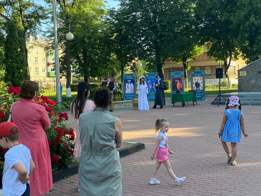 Множество людей собрались вечером в сквере Шахтёрской славы, когда артисты народного литературного театра «Серебряный век» представили им свою новую постановку «Одинокий странник», посвящённую жизни и творчеству великого русского писателя – Николая Васильевича Гоголя. Кто-то пришёл, прочитав афишу, кто-то просто проходил мимо, но равнодушным не остался никто. На одном дыхании зрители посмотрели театральный отрывок, а актёры и режиссёр театра – Клычкова Лариса Николаевна – получили заслуженные овации и восторженные отзывы.