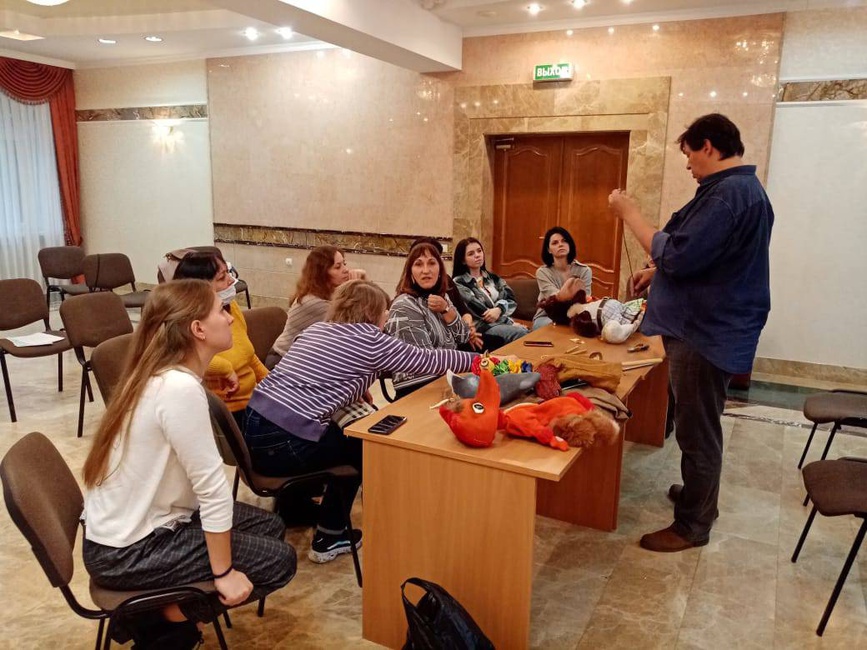 Режиссёр театра кукол "Гном" Бежина Ольга Петровна приняла участие в областной Школе актёрского мастерства в направлении "Театр кукол ". Провёл семинар ведущий актёр - кукловод, мастер по изготовлению кукол Белгородского областного театра кукол, член СТД РФ Щебеньков Николай Борисович. Все участники семинара пополнили свои знания в области кукловождения, изготовления и конструкции куклы, узнали много нового и интересного о методике работы с непрофессиональными актёрами.