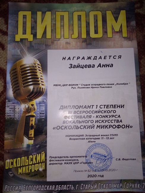Зайцева Анна - Дипломант I степени,