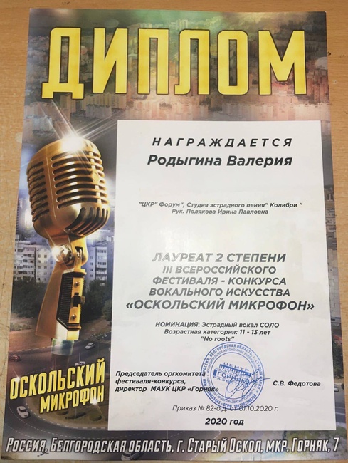 Родыгина Валерия - Лауреат II степени,