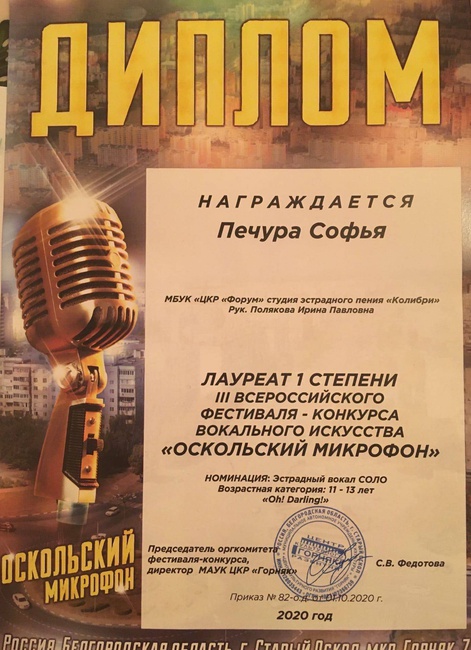 Печура Софья - Лауреат I степеи,