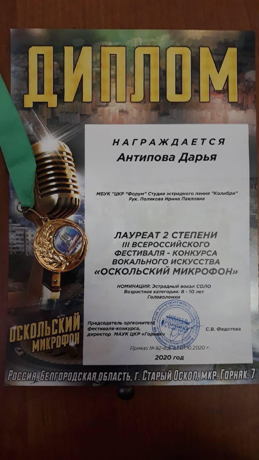 Антипова Дарья - Лауреат II степени,