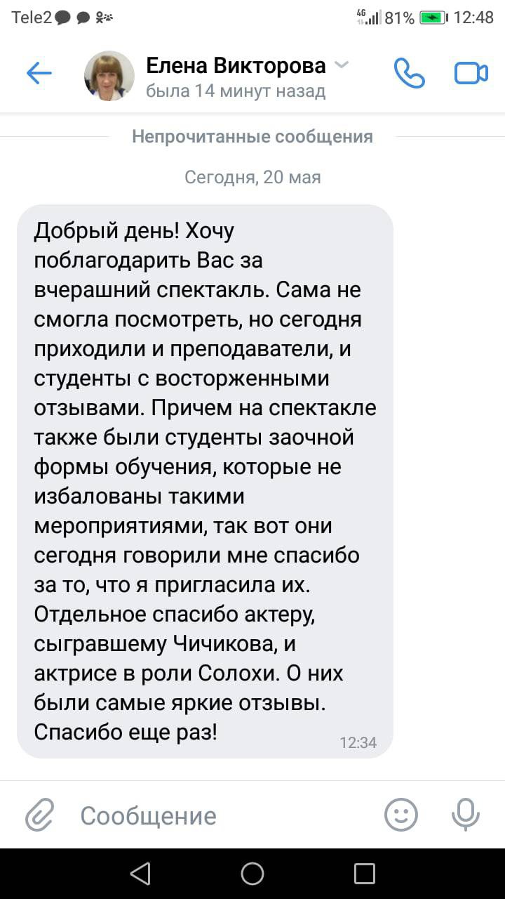 Самые ценные слова для нас - ваши отзывы! Спектакль "Одинокий странник" о жизни и творчестве Н.В. Гоголя посмотрели губкинские студенты
