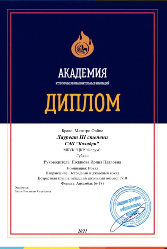 Поздравляем ансамбли СЭП "Колибри" с новыми победами на Всероссийском конкурсе "Браво, Маэстро"!