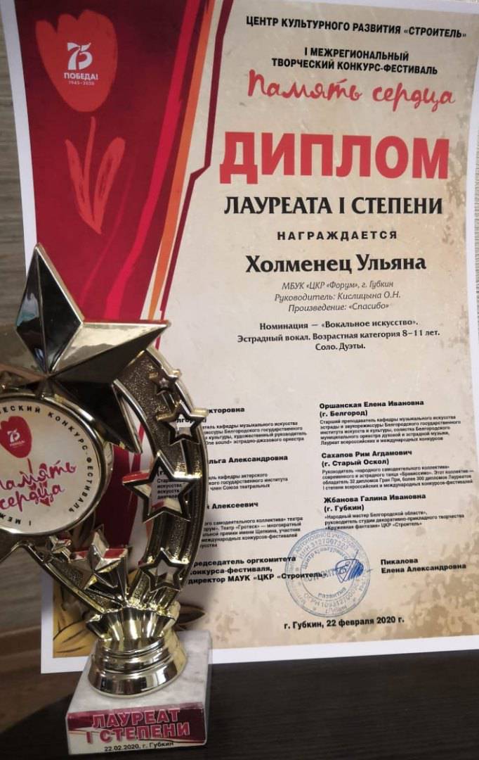 Поздравляем воспитанников творческих коллективов Центра культурного развития "Форум" - победителей I-го Межрегионального конкурса "Память сердца"