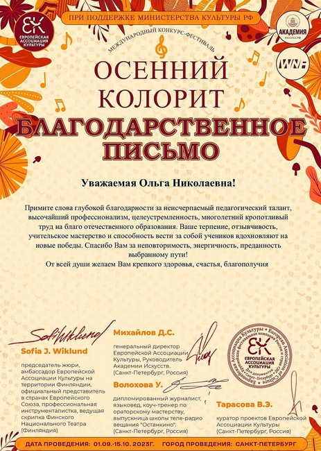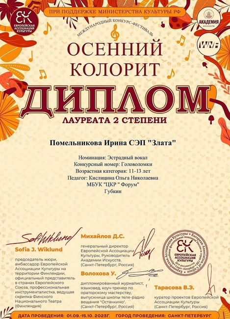 Международный конкурс "Осенний колорит - Лауреат 2 ст..