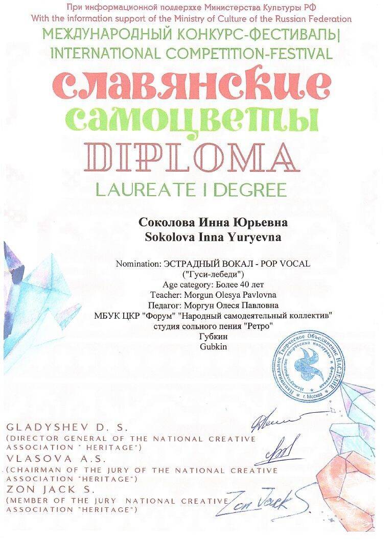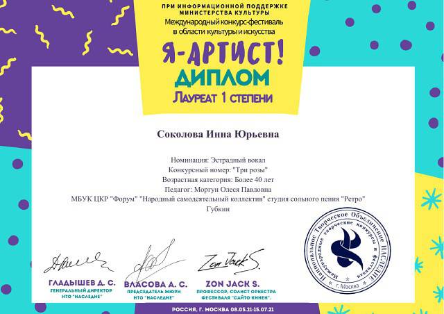 Поздравляем участников и руководителя студии сольного пения "Ретро" с отличными результатами в Международных конкурсах-фестивалях: