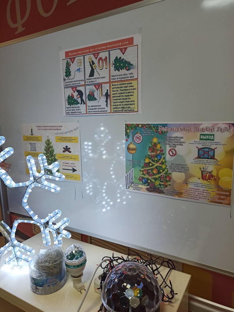 В ходе беседы инженер по охране труда Беседин А.С. рассказал о правилах пожарной безопасности при установке новогодней ёлки, о том, как поступить в случае возгорания в квартире или местах массового скопления людей, на что обращать внимание при выборе новогодних гирлянд и правила их использования.