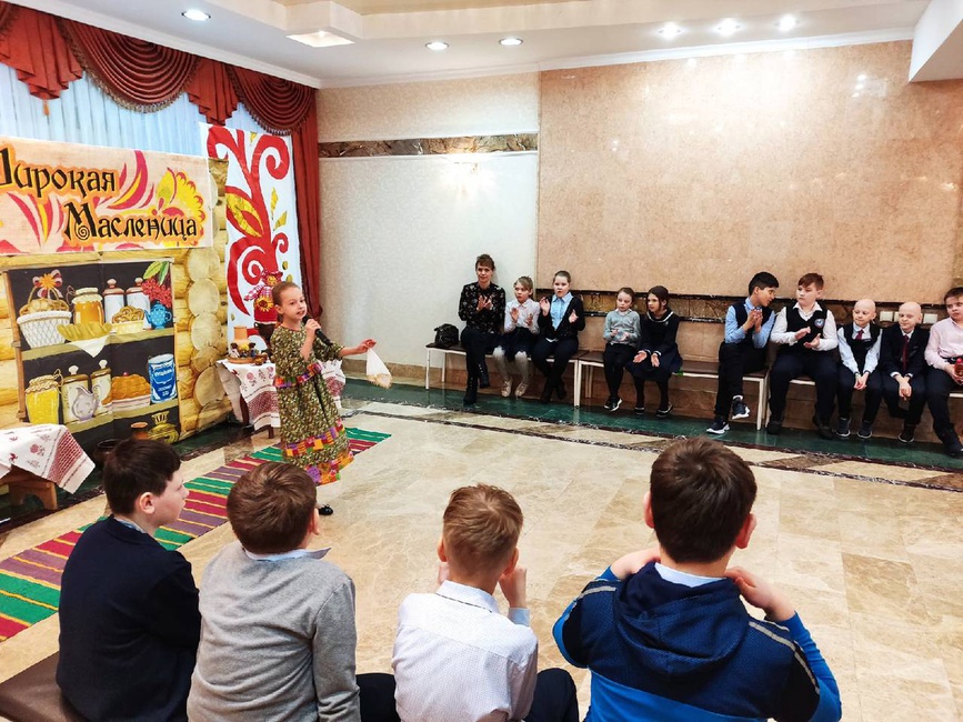 был пропитан народным колоритом: русские народные мелодии, соревновались в играх и забавах вспомнили пословицы и поговорки о Масленице и блинах. Главной героиней праздника стала красавица Весна, которая рассказала, как назывались все дни масленичной недели, и как они отмечались. Мальчишки и девчонки подпевали солистке ансамбля народной песни «Ладушки» Полиной Аксеновой.