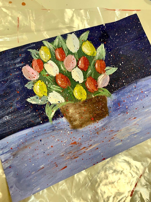 11 марта в Центре культурного развития "Форум" прошла занимательная арт-мастерская, где каждый участник смог расслабиться после тяжёлого рабочего дня и почувствовать себя настоящим художником. На занятиях действует принцип «Меньше теории, больше практики!». Всего несколько типов мазков дают возможность передать на бумаге совершенно разные образы, сочетанием которых можно изобразить все что угодно! На этот раз, вдохновившись праздником весны - художники изобразили корзину с тюльпанами.