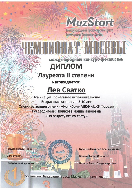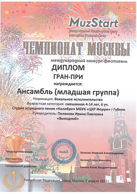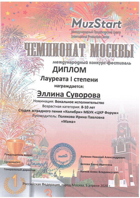 Очень просто! Студия эстрадного пения «Колибри» заочно приняла участие в Международном конкурсе «MuzStart”. Поздравляю вас мои дорогие ученики! Вы очень долго трудились и достойны этих наград!"