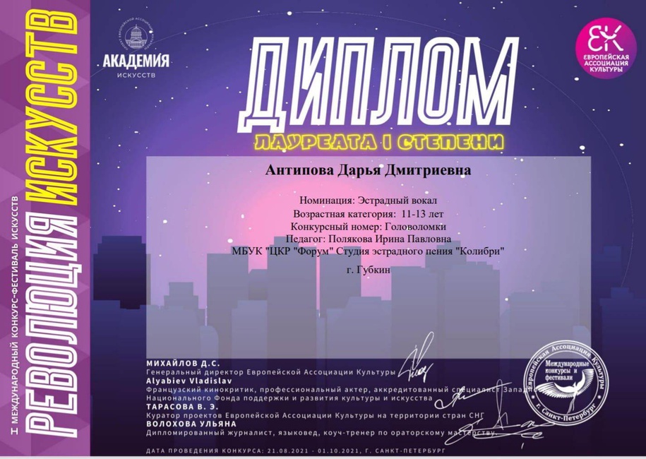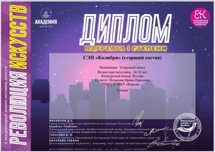 Позравляем нашу любимую СЭП «КОЛИБРИ» с новыми победами на международном конкурсе «РЕВОЛЮЦИЯ ИСКУССТВ»!