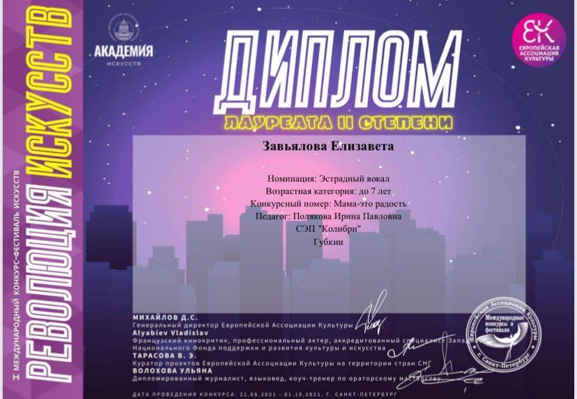 - Лауреат II степени Елизавета Завьялова ;
