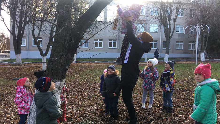 Малыши составили рецепт добрых дел для братьев наших меньших: узнали, что птицы имеют огромное значение в природе и в сельском хозяйстве, оберегают посадки от насекомых-вредителей; провели экологическую викторину «Что ты знаешь о зимующих птицах?», а затем все вместе развесили кормушки в сквере Шахтерской Славы.