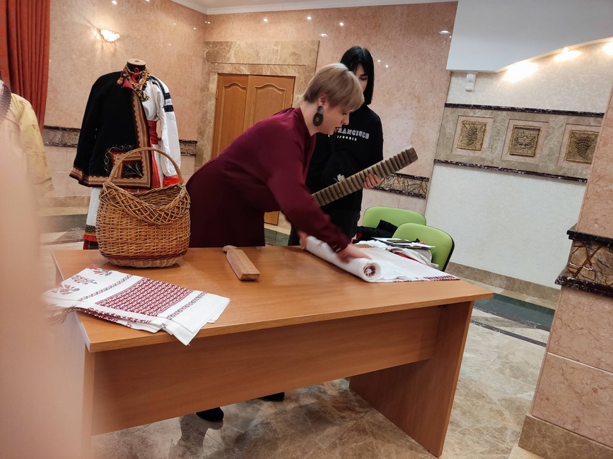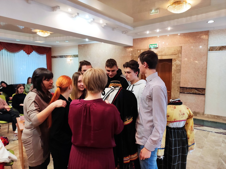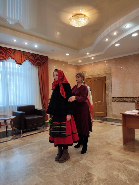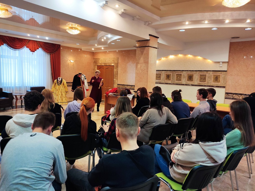 В рамках реализации муниципального проекта «Жили-были» 7 февраля 2022г. состоялось практическое занятие по народному прикладному творчеству «Традиционный костюм». В ходе мероприятия участникам были продемонстрированы подлинные комплексы костюмов Белгородской области. Рассказано о традиционной одежде, материалах из которых её изготавливали, украшениях и особенностях вышивки. Организаторы практикума продемонстрировали музейные экспонаты: рушники, рубели, кушаки, платки. Показали способы повязывания платков «по-губкински». Участниками мероприятия стали студенты ГГПК, которые узнали о жизни русской красавицы через её костюм, поняли зачем женщине рога и рубашка-намышница, почему до сих пор самое дорогое мы храним в загашнике, а работать можем «спустя рукава». В финале мероприятия провели фотосессию в традиционных костюмах.