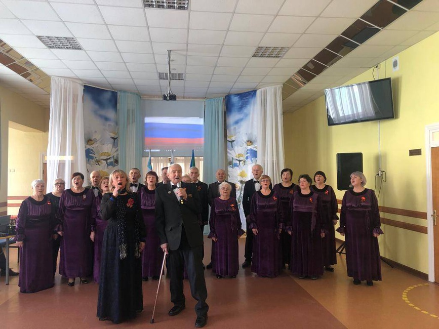 Концертную программу "Мы - армия народа" хор исполнил вместе с военно-патриотическим клубом "Искорки" в СОШ №1. Зрители прикоснулись к истории праздника благодаря рассказу ветерана ВОВ Владимира Вологи и с замиранием сердца слушали послевоенные песни. В завершении концерта весь зал превратился в один большой хор - школьники пели вместе с артистами "Катюшу" и "Пусть всегда будет Солнце!".