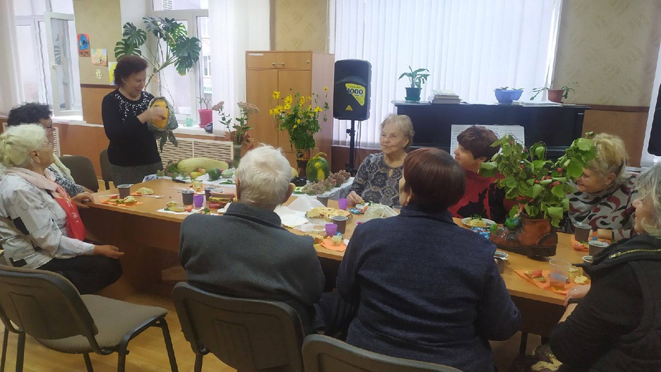 Участники хора ветеранов «Живая память» не только прекрасно поют, но и знают немало секретов домашних заготовок. Поделиться с друзьями рецептами консервации овощей и фруктов, рассказать секреты хранения осенних плодов и угостить друг друга смогли участники этой встречи. Руководитель коллектива – Оксана Загороднева рассказала о хранении урожая в далеком прошлом, о том, как запасали продукты на зиму прабабушки и какие способы обработки урожая были самыми востребованными. Песни об осени и осенних дарах собравшиеся по традиции исполнили за чашкой чая.