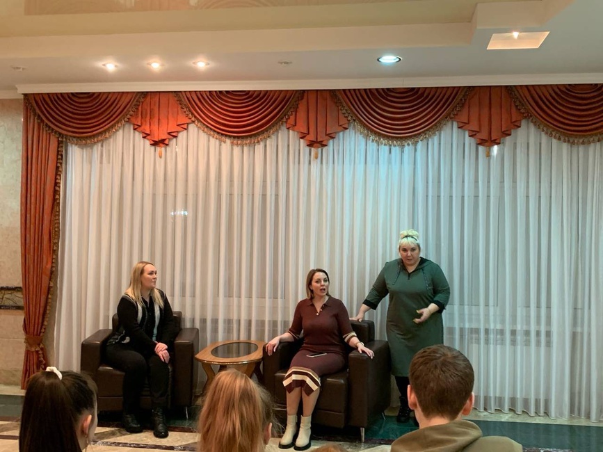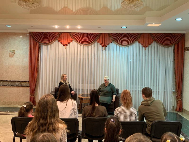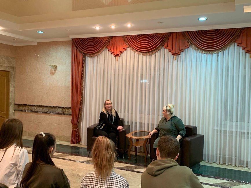 Маргарита Емельянова прозанималась в коллективе 13 лет, она поделилась с ребятами своими воспоминаниями о занятиях в группе «Колибри», о гастрольных поездках, концертах. Сейчас Маргарита является артисткой Муниципального ансамбля «Аэлита» и постоянным участником концертов Ирины Поляковой и группы «Колибри».