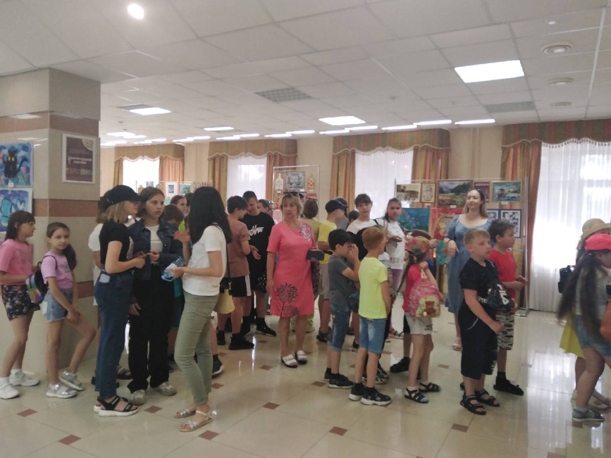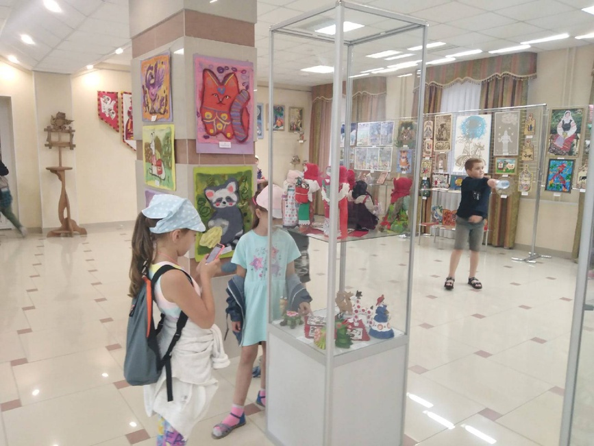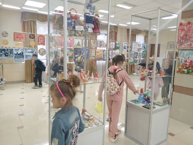 Дети городских школьных лагерей в выставочном зале «ЦКР «Форум« на выставке прикладного искусства «Белгородский сувенир»