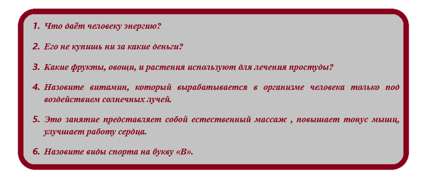 Здоровый образ жизни - это отказ от разрушителей здоровья. Что можно отнести к разрушителям здоровья? (вредные привычки, курение, употребление спиртных напитков и т.д.)