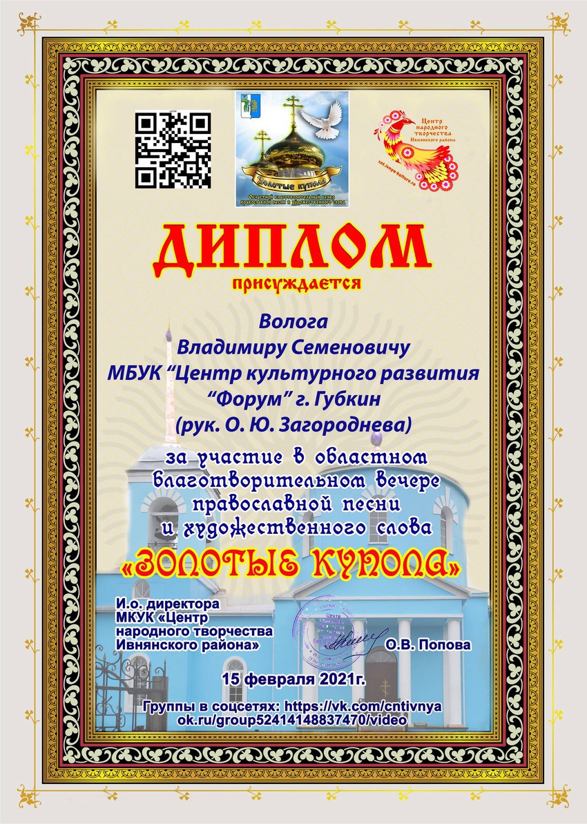 Владимир Семенович Волога - солист хора ветеранов "Живая память" принял участие в областном благотворительном вечере православной песни и художественного слова «Золотые купола».