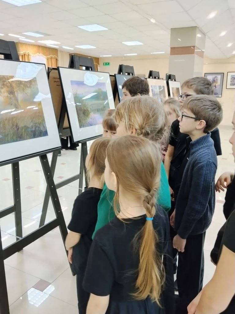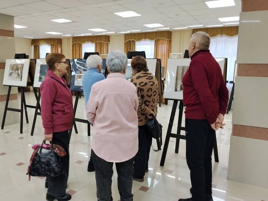 Посетители с удовольствием рассматривают картины, делятся впечатлениями и слушают лекторий Заслуженного работника культуры РФ - Людмилы Ивановны Коротеевой.